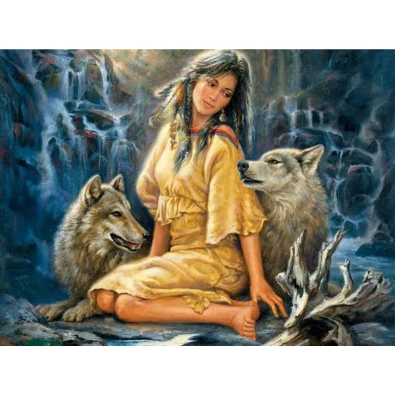 5D DIY Diamond Painting Beauty and Wolf Cross Stitch Full Round Drill Diamond Embroidery Mosaic Sti