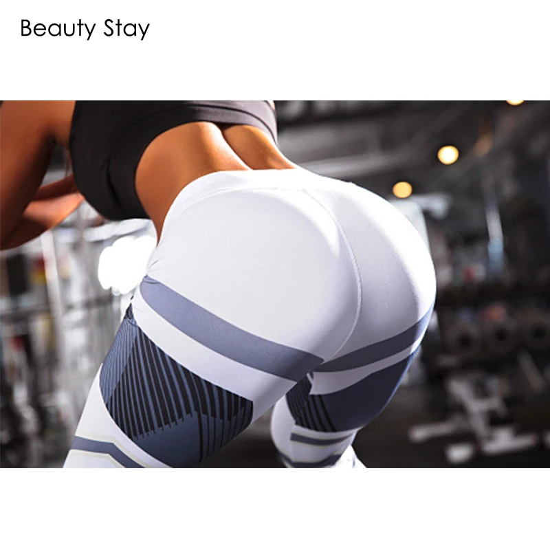 HOT Sale Beauty Stay Women Leggings Digital Print Stitching High-waist Black Polyester Ankle-Length Fitness
